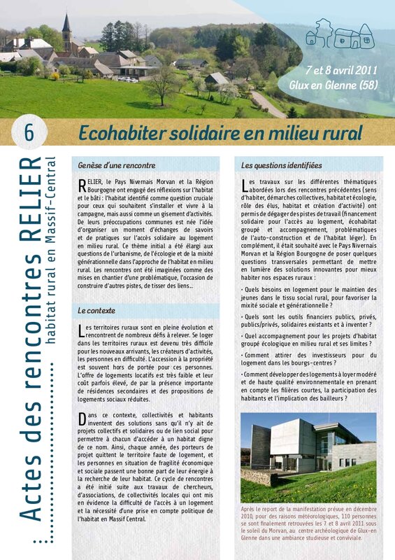 Les 7 et 8 avril derniers se tenaient à Glux en Glenne les rencontres Écohabiter solidaire en milieu rural, organisées en partenariat avec la Région Bourgogne et le Pays Nivernais Morvan.